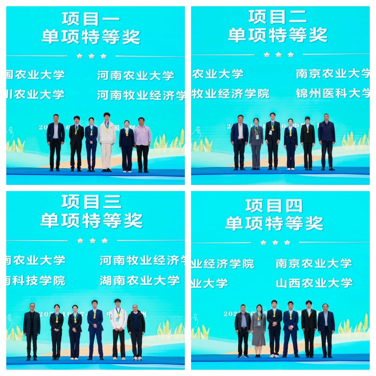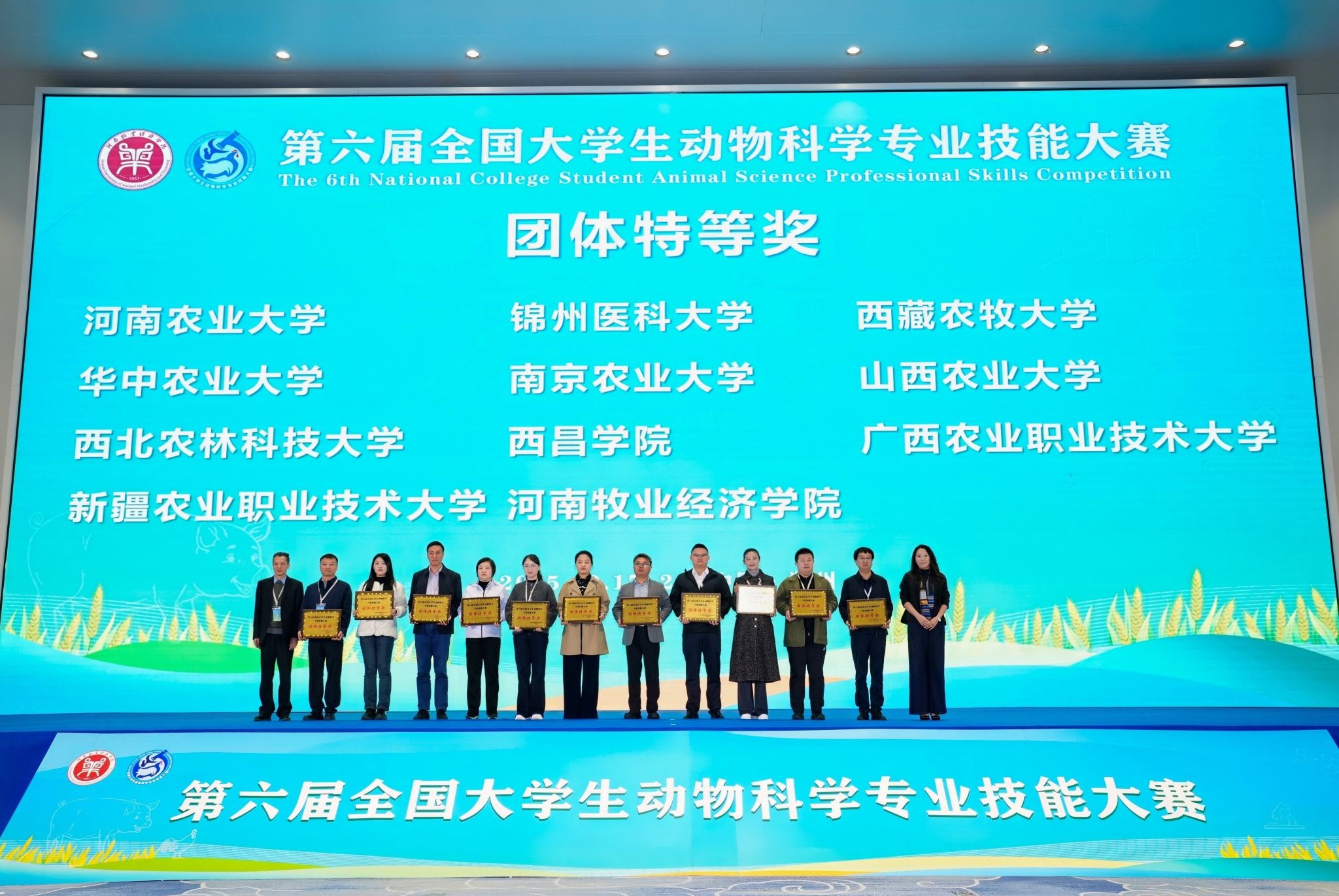 大赛由全国动物科学专业技能大赛联盟主办,教育部高等学校动物生产类专业教学指导委员会指导、河南牧业经济学院承办。作为全国动物科学专业领域参与度最高、影响力最广的全国性、权威性赛事,本次大赛吸引了来自全国73所高校的740余名师生同台竞技。此次大赛竞赛内容包括生态畜牧场规划设计;饲料原料快速鉴定与掺假识别—掺假鱼粉的鉴定;鸡的精液采集、品质检测及人工授精以;猪的体型外貌评分、活体背膘厚与眼肌面积测定四个项目。经过紧张激烈的角逐,我院代表队斩获1项团体特等奖和4项单项特等奖,这一成绩刷新纪录,创下我校在该赛事举办以来的历史最佳成绩。