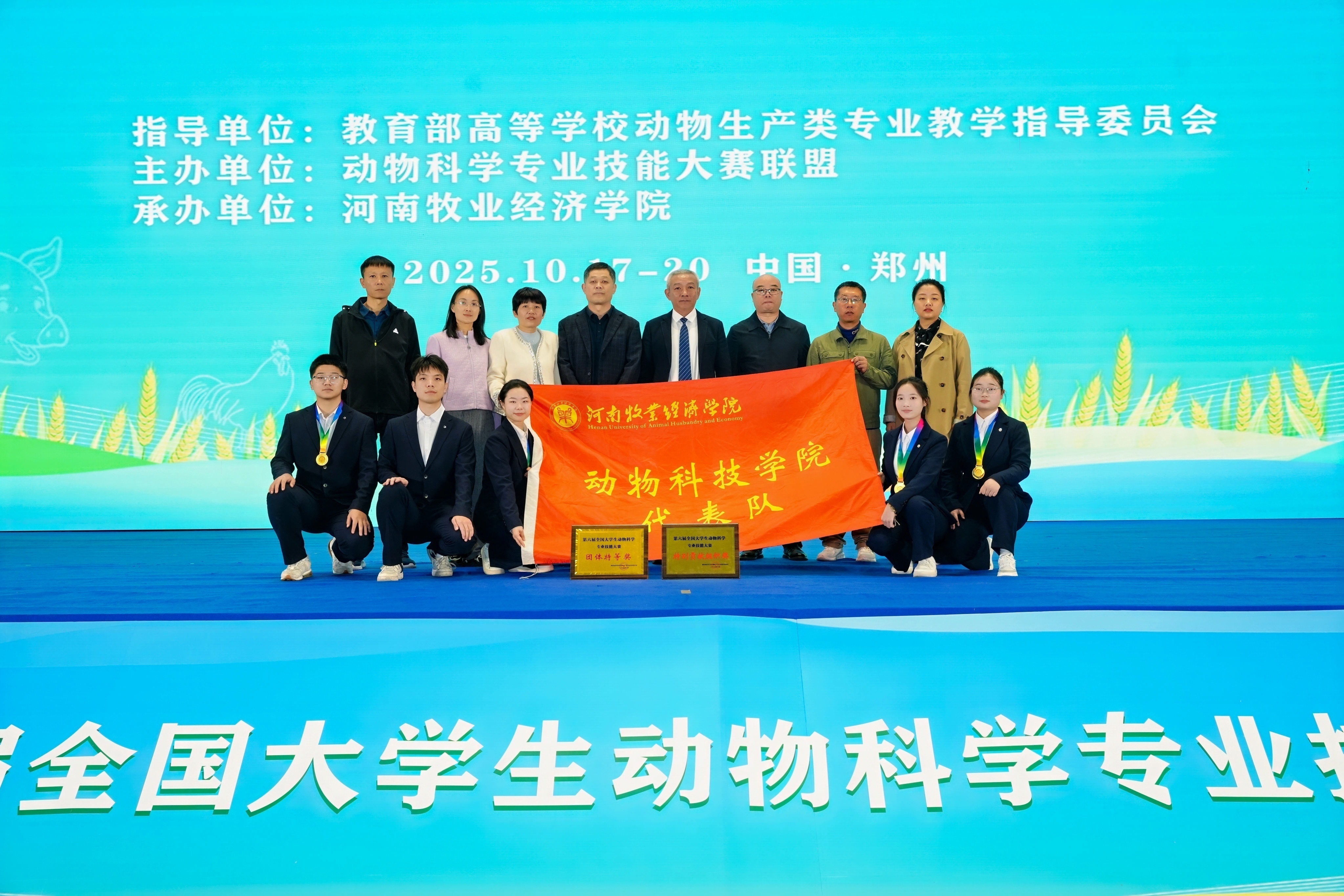 2025年10月18日至19日,第六届全国大学生动物科学专业技能大赛在河南牧业经济学院举办。动物科技学院姜东凤副院长带队,马伟、石志芳、郭建来、姬向波、刘健、崔锦、赵广伟和侯甲男老师担任指导教师,2022级动物科学专业本科生王鹏旭、2022级智慧牧业科学与工程专业本科生赵宋文、梁潇轩及2023级动物科学专业本科生刘怡鑫、李钰烜共5名学生组成的代表队代表我校参加比赛。