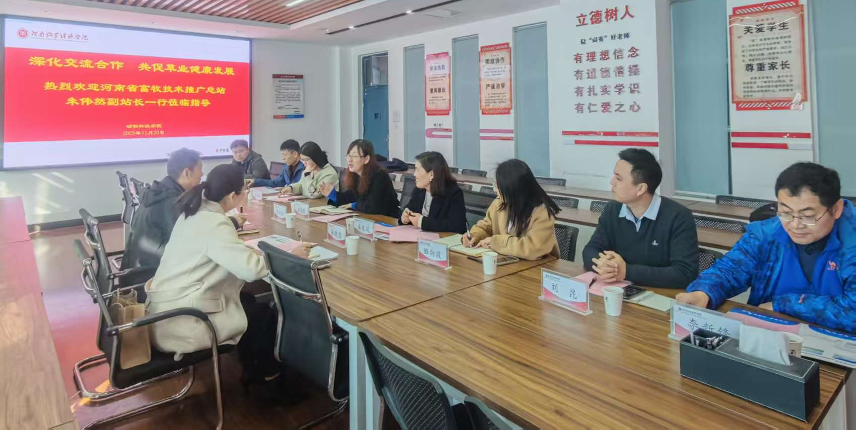 首先,潘春梅致欢迎辞,她对河南省畜牧技术推广总站领导的到来表示热烈欢迎,并根据座谈会主题重点介绍了学校在草业科学方面的师资、实验平台、实验室条件等优势。随后,河南省畜牧技术推广总站朱伟然和张晓霞分别就合作设想及相关情况进行介绍,对学院的专业实力和科研积累给予了高度评价,表达了与学院在草业科学领域开展深度合作的强烈意愿。姜东凤表示,此次总站领导的到访与提出的合作设想,为学院的发展带来了宝贵的机遇,学院将积极把握这一机遇,整合院内草业科研力量,与总站通力协作,共同推动我省草业科研水平和技术应用能力的提升。