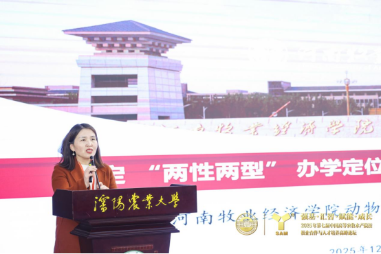 动物科技学院副院长姜东凤代表学院做《锚定“两性两型”办学定位,赋能畜牧业高质量发展》报告
