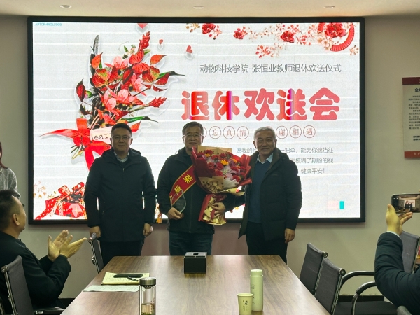 12月26日下午,动物科技学院在生工楼B301为深耕教坛四十载的张恒业教授举行了温馨而隆重的荣休仪式。学院领导班子成员及教师齐聚一堂,共同致敬这位将毕生心血奉献给教育事业与科技服务的学者。